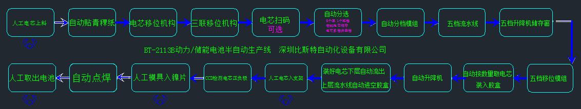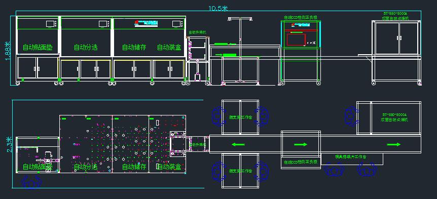 BT-2113B2電芯自動面墊分選裝盒生產線擺放圖 長10.5*寬2.3*高1.88米